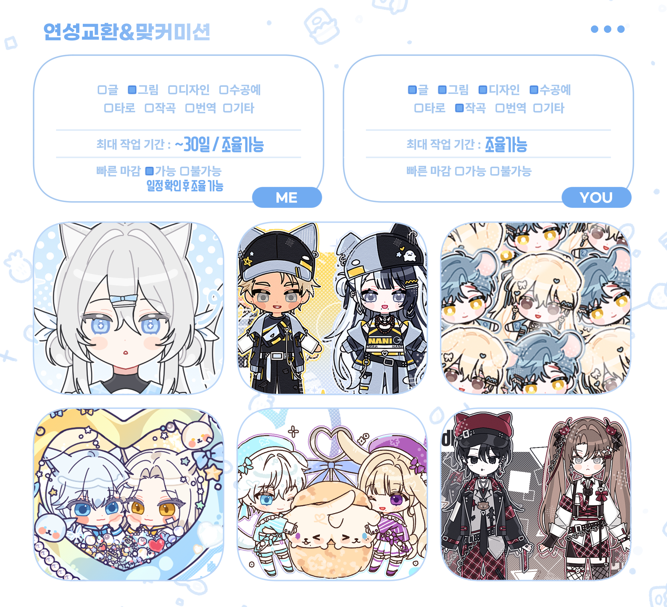 🩵 진행 기간은 대부분 최대 한달로, 상대분과 최대한 맞출 예정입니다.